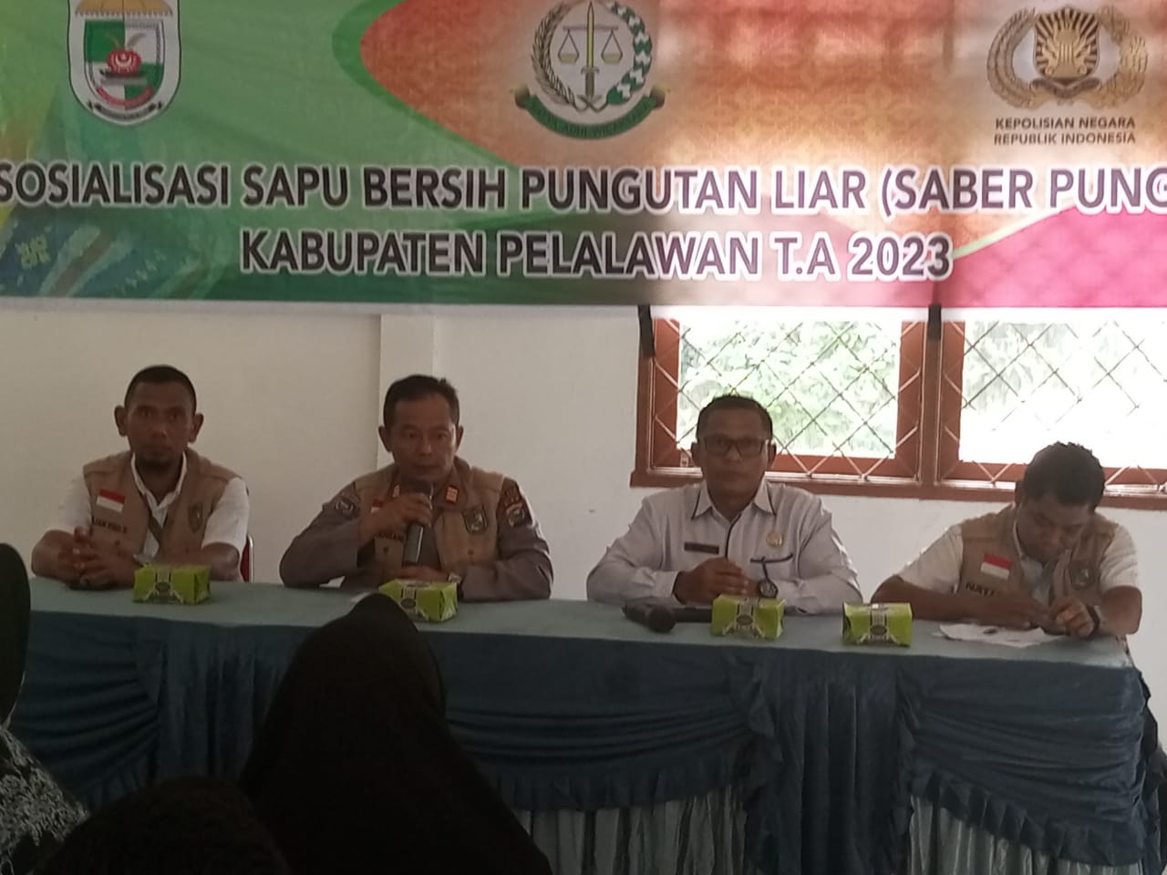 Dalam rangka mencegah pungutan liar (Pungli), Satgas Unit Pemberantasan Pungutan Sapu Bersih Pungutan Liar (Saber Pungli) Kabupaten Pelalawan, Inspektorat Daerah Kabupaten Pelalawan bersama Kejaksaan Negeri Pelalawan dan Polres Pelalawan kembali menggelar sosialisasi pencegahan praktek pungli di aula kantor Kecamatan Pangkalan Lesung (04/10/2023).